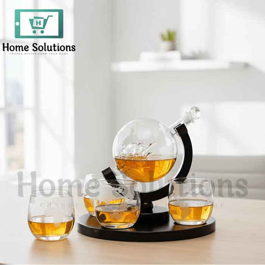Sailing Ship Globe Decanter Set with Stand & 4 Glasses