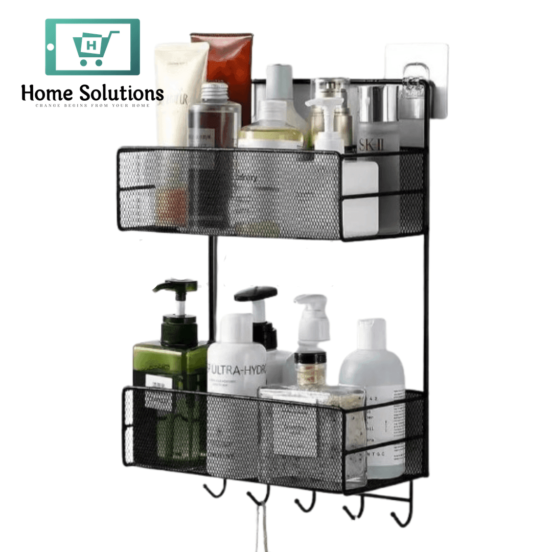 2 Layer Bathroom Shelf with Hooks | Space-Saving Organizer