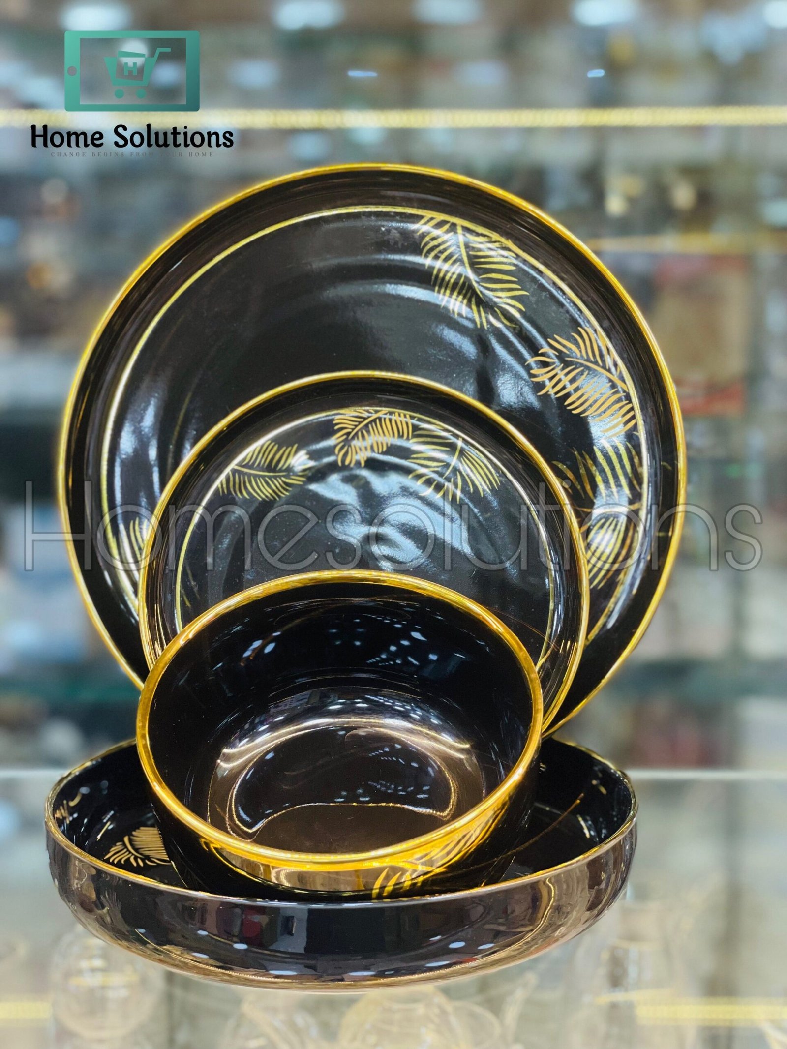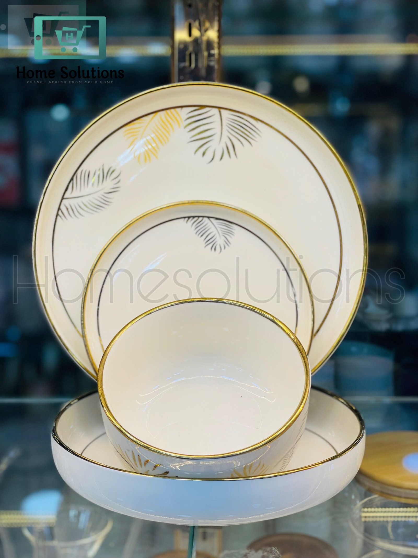 Fine quality ceramic 24pcs dinner set with beautiful gold print.