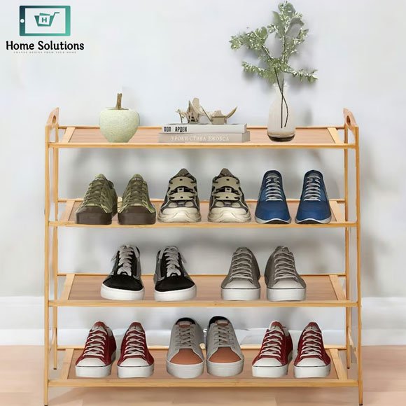 4 Layer Wooden Shoe Rack – Multipurpose Shoe Organizer for Home