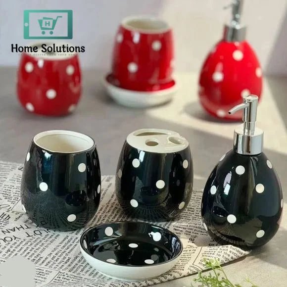 Add a bold touch to your bathroom with this 4-piece black and red bath set, designed to combine style with everyday practicality. Featuring a liquid soap dispenser, a toothbrush holder, and matching accessories, it keeps your essentials organized while enhancing your bathroom décor. Durable, easy to clean, and perfect for daily use, this set blends functionality with a modern, eye-catching design.