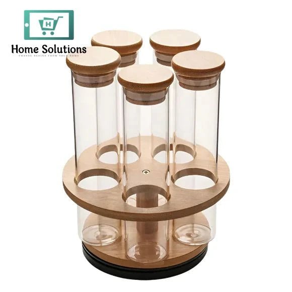 Organize your kitchen essentials with elegance and ease using this 5-Piece Cylinder Glass Condiment Jar Set, complete with a beautifully crafted wooden organizer stand. Each jar is made from premium-quality transparent glass and features a secure airlock lid to keep contents fresh, flavorful, and moisture-free.