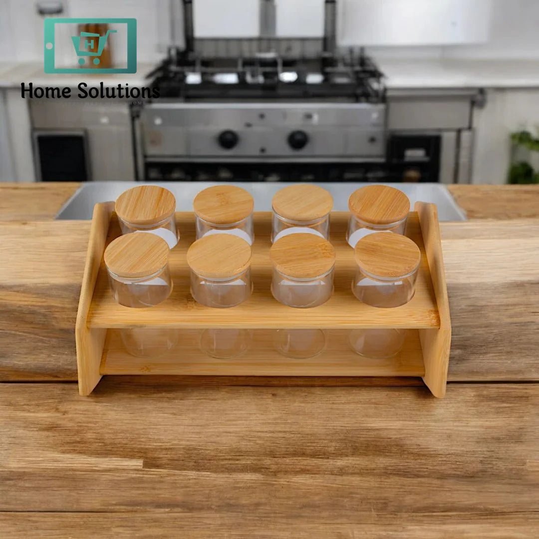 Upgrade your kitchen storage with this 8-Piece Airlock Jar Organizer Set, complete with a sleek and sturdy wooden stand. Designed to keep your pantry neat and your ingredients fresh, each jar features a secure airlock lid that preserves flavor, aroma, and crunch.