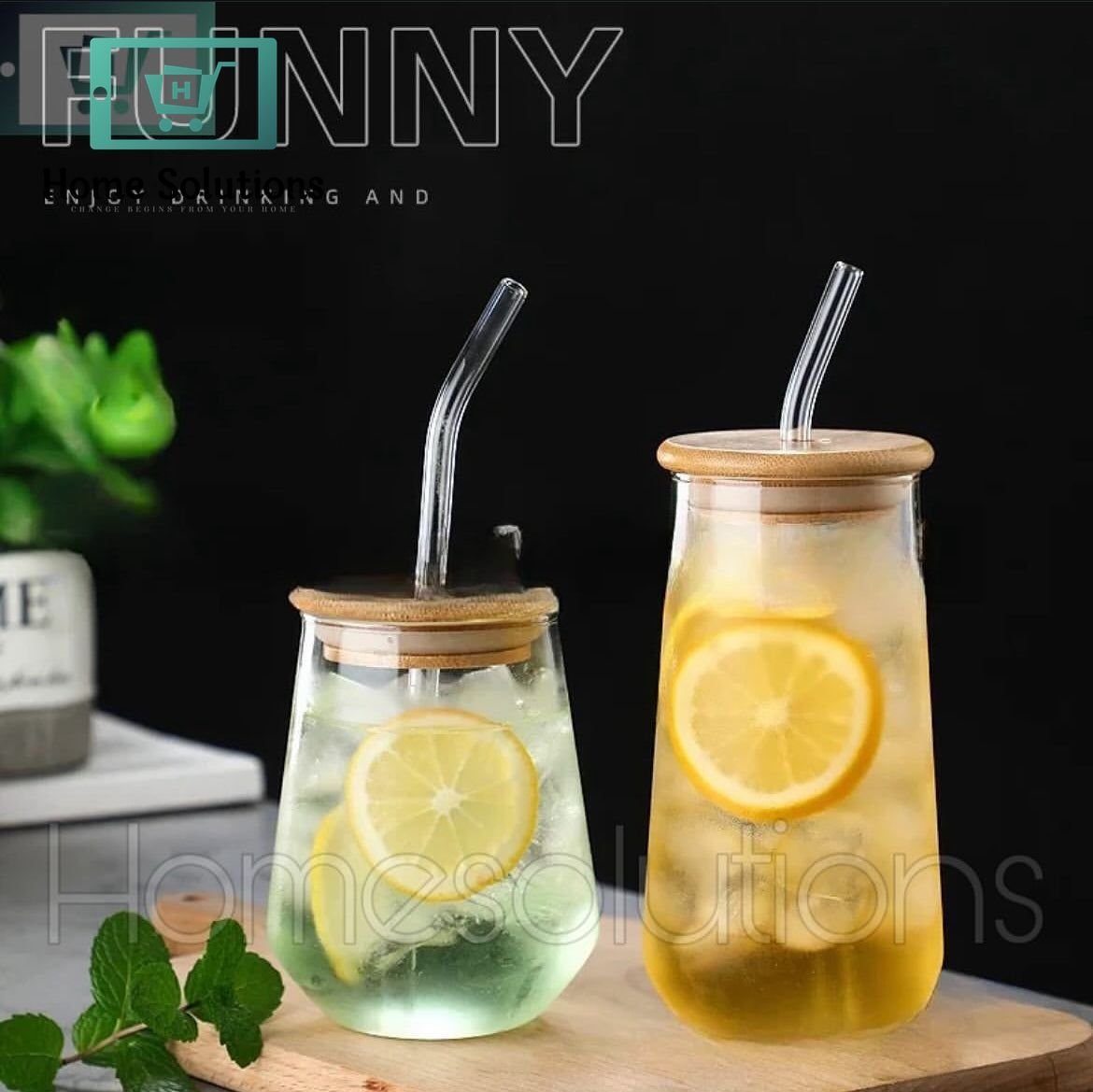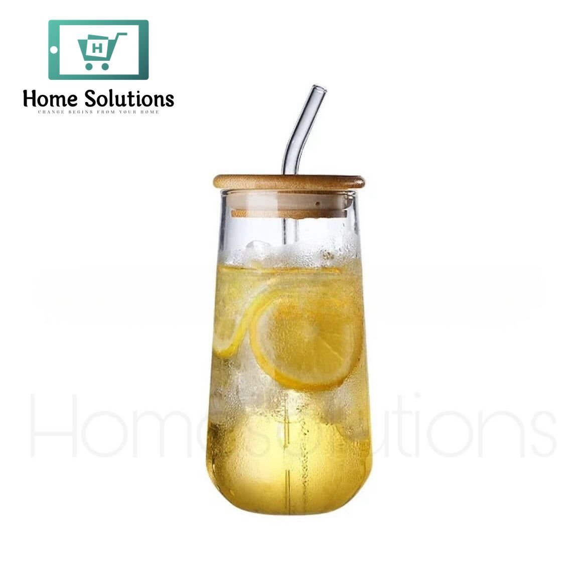 A Stylish And Elegant Ice Tea Glass With Organic Bamboo Lid And Glass Straw 500ml