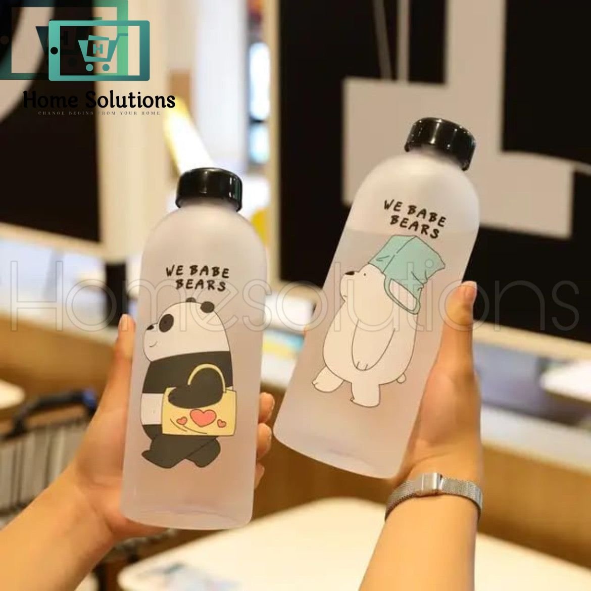 Acrylic bear And panda water Bottle With Dual Top.
