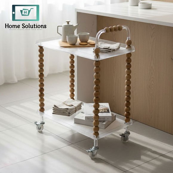Sleek acrylic tea trolley for easy moving, serving drinks, or displaying decor in your home.