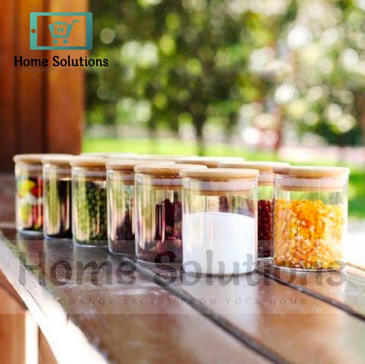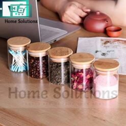 Danny Home 6-Piece Airtight Glass Jar Set with Wooden Rack – Premium Spice Storage Solution