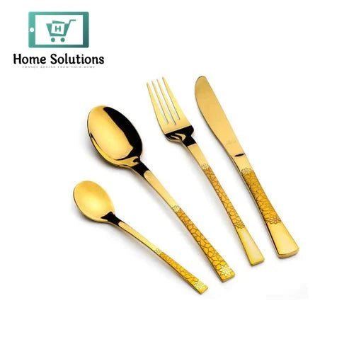 Arshia 50pcs gold Cutlery Set, a testament to modern elegance and sophistication. This sleek and contemporary collection is designed to enhance your dining experience with its unique gold finishing. Made with precision and attention to detail, each piece in this set exudes style and functionality, making it a must-have for any discerning host or hostess.