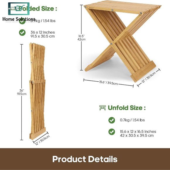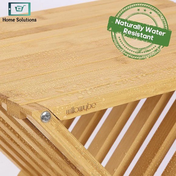 Premium bamboo folding stool with waterproof coating. Perfect for bathroom, sauna, or multi-use seating. Durable, portable & space-saving design.