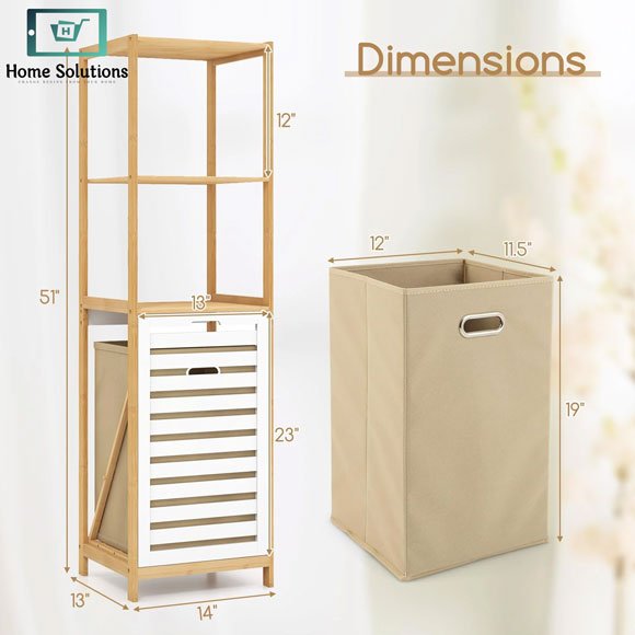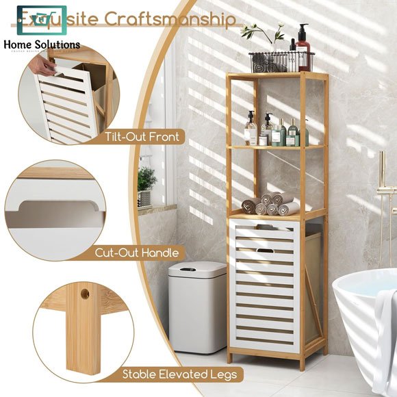 Bamboo Laundry Basket and Cabinet with 3-Tier Storage Shelves