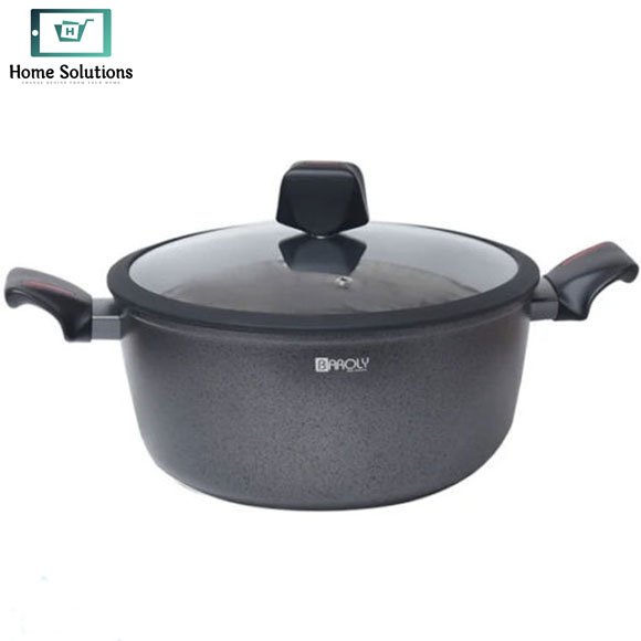 Prepare your favorite dishes effortlessly with the BAROLY Non-Stick Casserole with Glass Lid (Model 85-11-28), designed for robustness, elegance, and ease of use. Perfect for simmering, boiling, or braising, this non-stick casserole brings convenience and style to your kitchen.