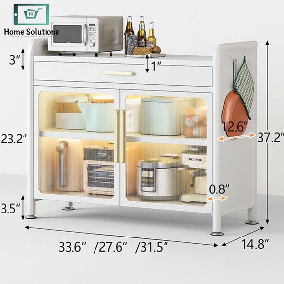 Featuring a spacious top drawer and two-tier storage shelves, this cabinet provides ample room for organizing kitchenware, small appliances, coffee supplies, or office pantry items. Its versatile design makes it ideal as a coffee station, microwave stand, sideboard, or compact storage console.
