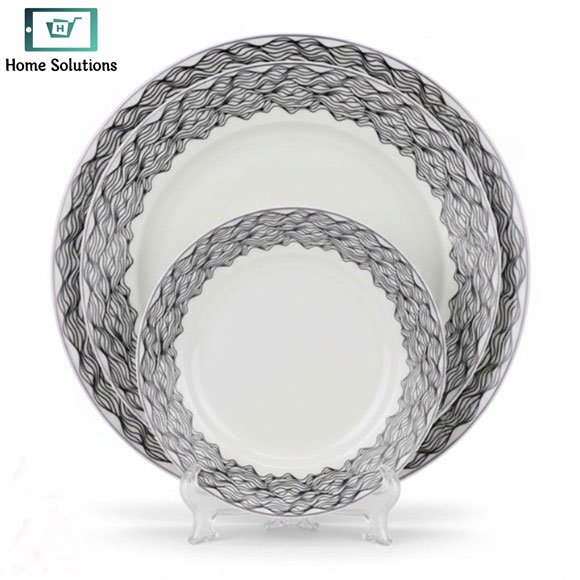 Made from premium Royal Bone China, this dinner set is lightweight yet durable, featuring a smooth glazed finish with the iconic Embassy pattern that enhances both traditional and modern table settings. The delicate detailing and fine texture offer a luxurious dining experience for formal dinners, special occasions, and everyday elegance.