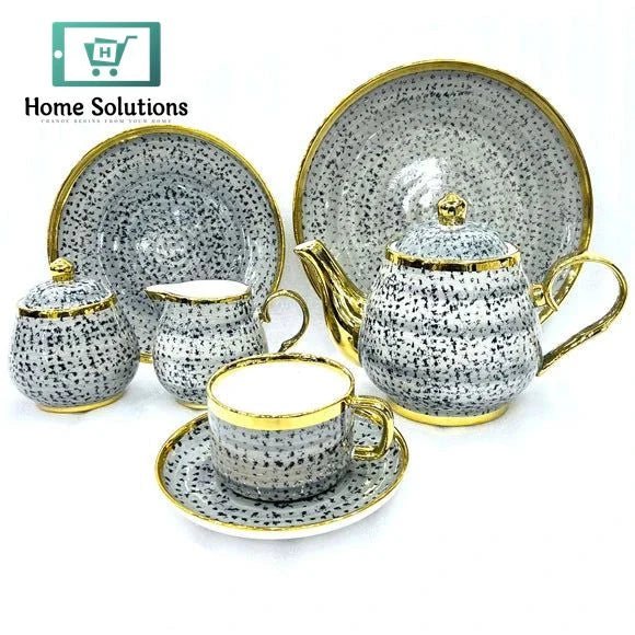Bone China Tea Set 24-Piece – Hand-Painted Pattern for Elegant Serving (Grey)