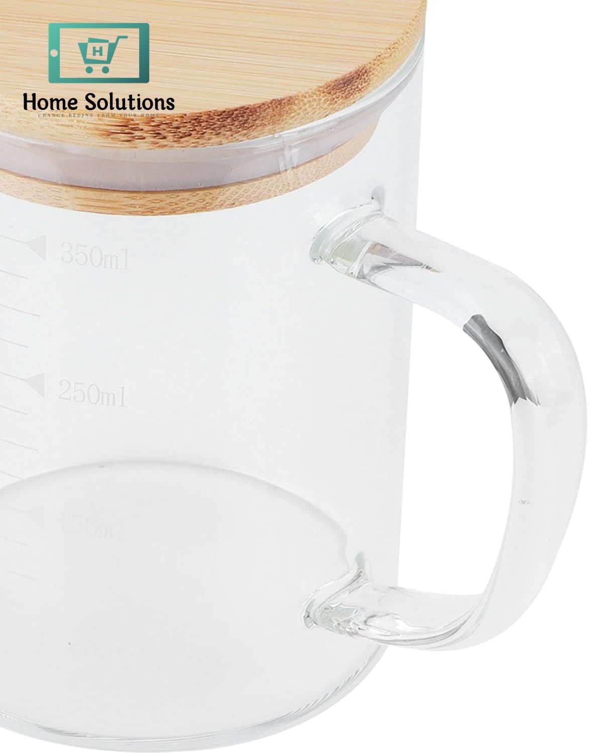 Crafted from heat-resistant borosilicate glass, it’s safe for both hot and cold liquids. The ergonomic handle offers a firm grip, while the natural wooden lid keeps contents fresh and protected from dust or spills.