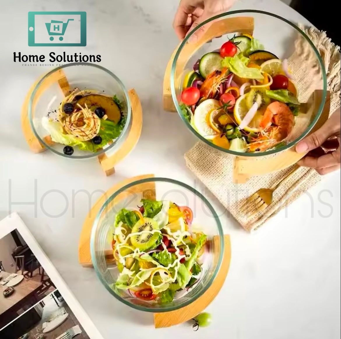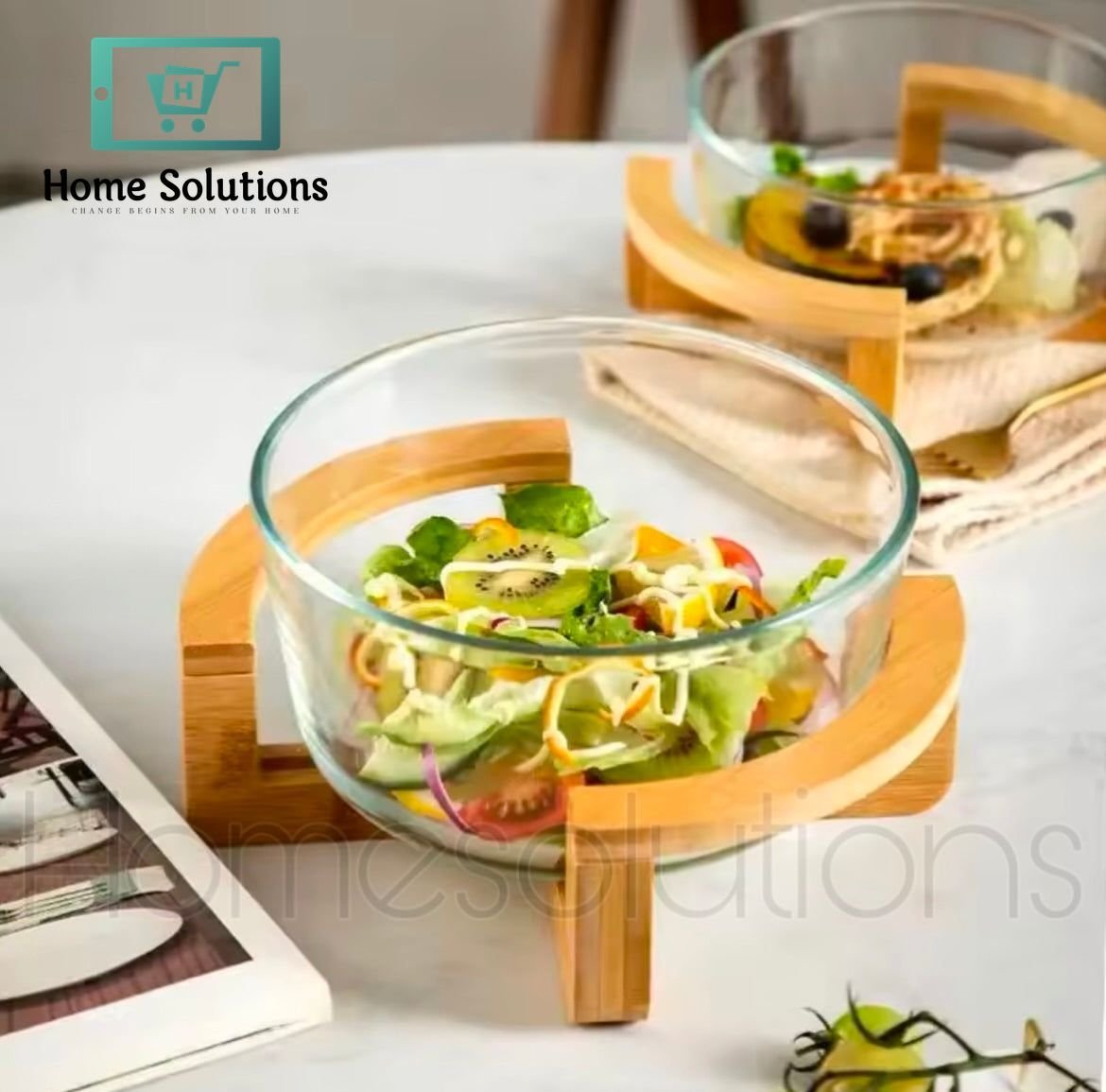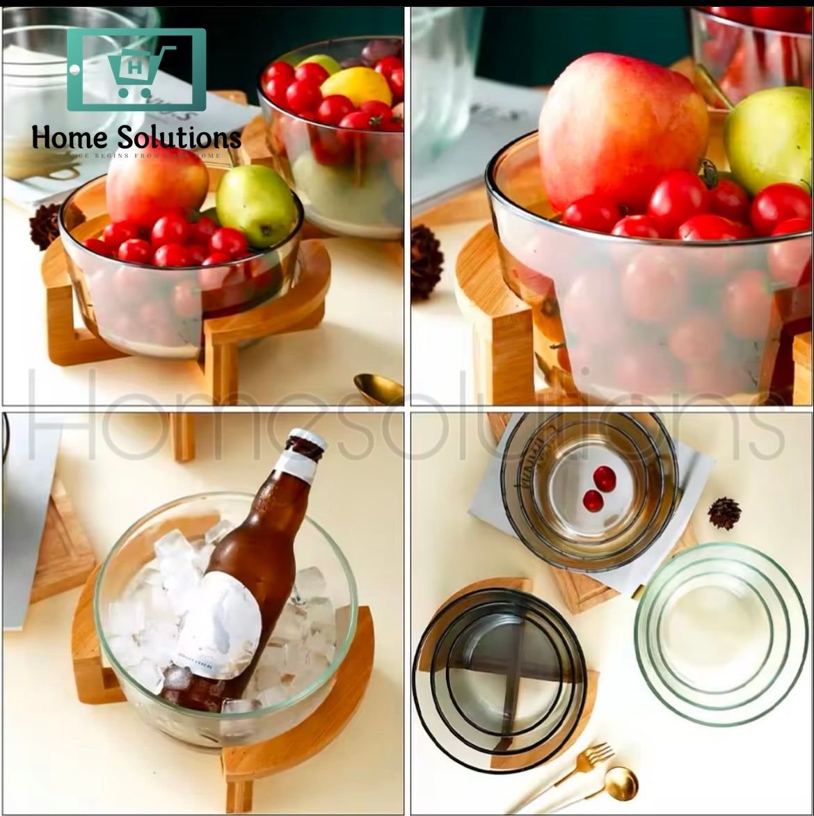 Borosilicate Glass Salad Bowl with Bamboo Stand
