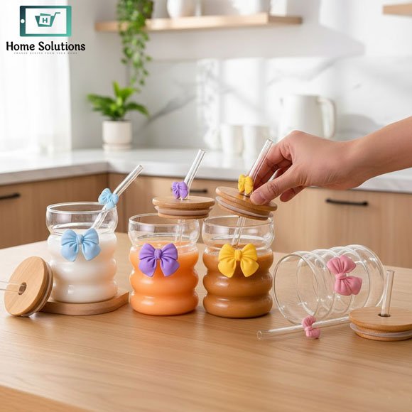 Add elegance to your drinkware with the Bow Wavy Ice Tea Glass 350ML with Straw & Bamboo Lid. Made from high-quality transparent glass, this stylish cup features a beautiful wavy texture and cute bow design, making every drink look more attractive.