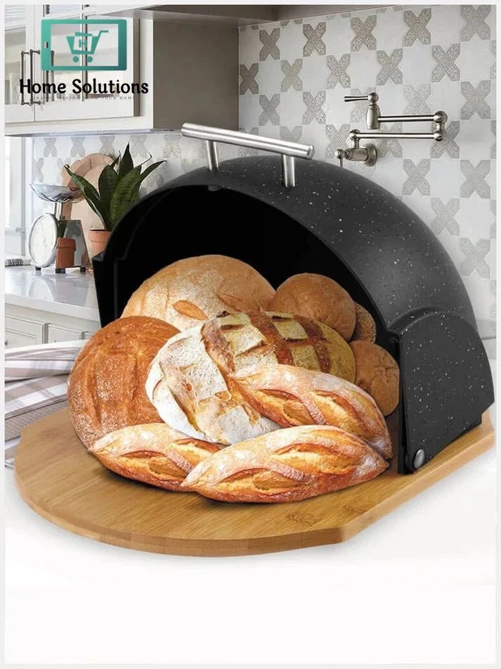 Vintage Metal Roll-Top Bread Box – Large Dust-Proof Storage Bin for Kitchen & Countertops (Black)