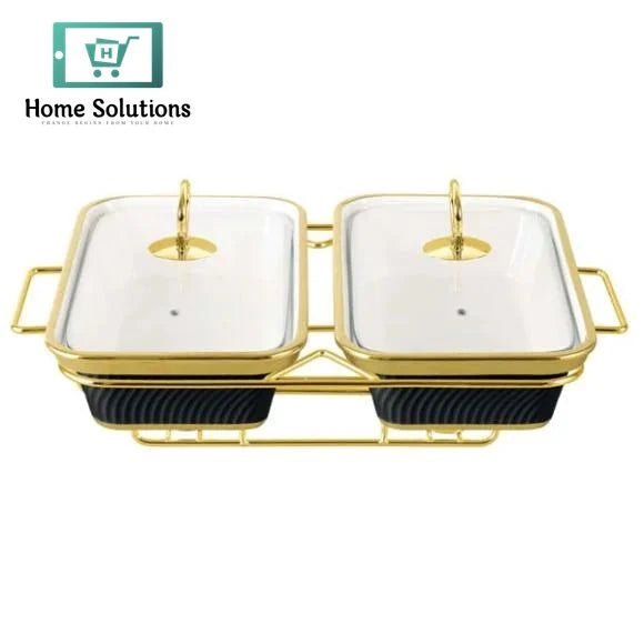 Brilliant 12-Inch Twin Rectangular Serving Dish – With Elegant Candle Warmer Stand