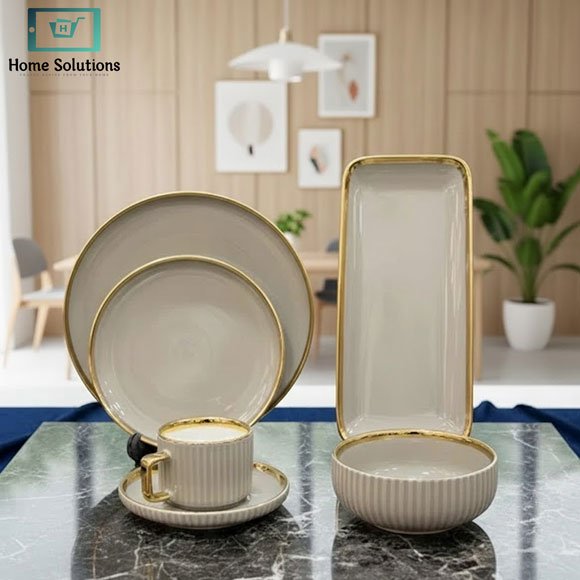 Upgrade your dining experience with this Ceramic Dinner Set – Brown (32 Pieces), designed to bring elegance and sophistication to your table. Crafted from high-quality ceramic, this set features a clean Brown finish with refined gold rim detailing and a subtle ribbed texture that enhances its modern luxury appeal.