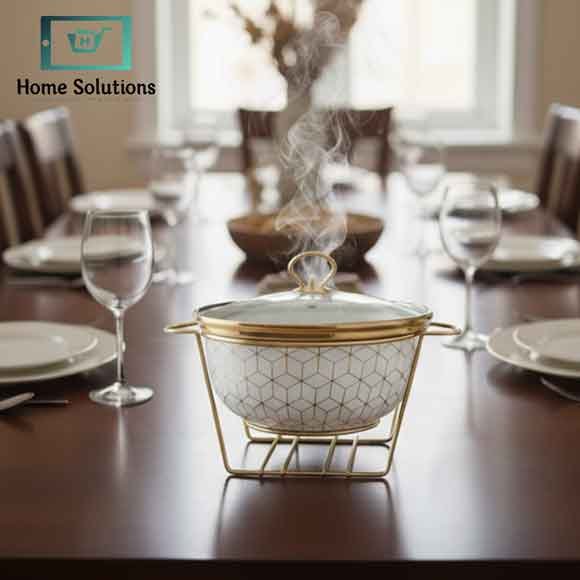 Serve your dishes in style with the 10.5″ Round White Chafing Dish. Perfect for parties, weddings, and catering events, it keeps food warm and ready to serve. Crafted for durability and easy cleaning, this dish is ideal for both professional and home use. Its round design allows serving a generous portion while maintaining a modern and elegant buffet presentation.
