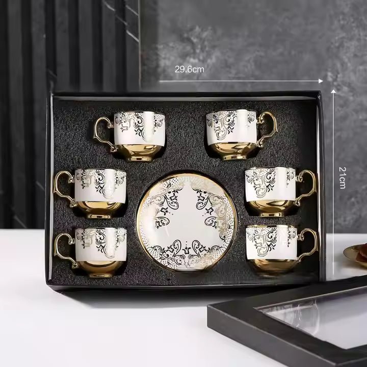 Each cup is perfectly paired with a matching saucer, offering a coordinated look and comfortable handling. Whether for personal use or entertaining guests, this set is a beautiful addition to any kitchen or serving space.