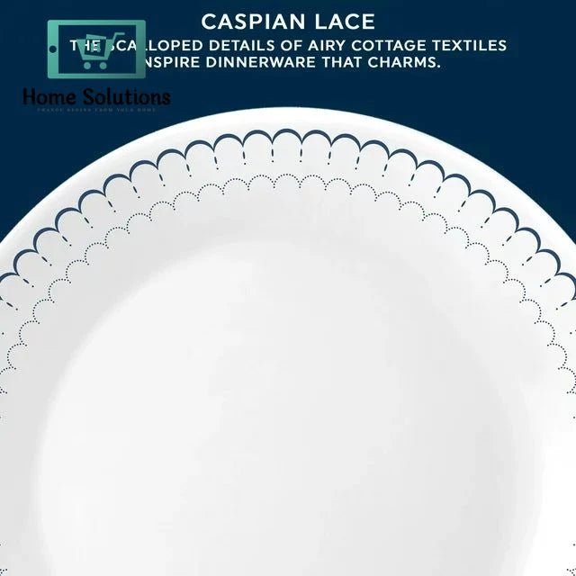 - Caspian Lace 18-piece dinnerware set includes 6 each: 10.25″ dinner plates, 6.75″ appetizer plates and 18-ounce cereal bowls