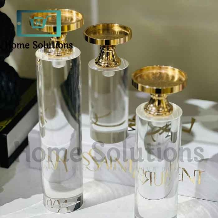 Illuminate your home with our elegant Cylindrical Glass & Gold Pillar Candle Holder Set. This sophisticated trio features sleek, clear cylindrical glass bases of varying heights, topped with polished gold-tone plates, perfectly designed to hold pillar candles, votives, or small LED candles. Their clean lines and modern design make them an ideal centerpiece for dining tables, console tables, or mantels, effortlessly enhancing contemporary, minimalist, or even luxurious decor styles. A beautiful and versatile addition to your Home Solutions collection, offering both ambient lighting and high-end aesthetic appeal.