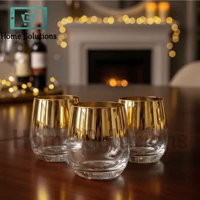 Danny Home 6-Pc Gold Rim Glass Set 345ml – Elegant Drinkware