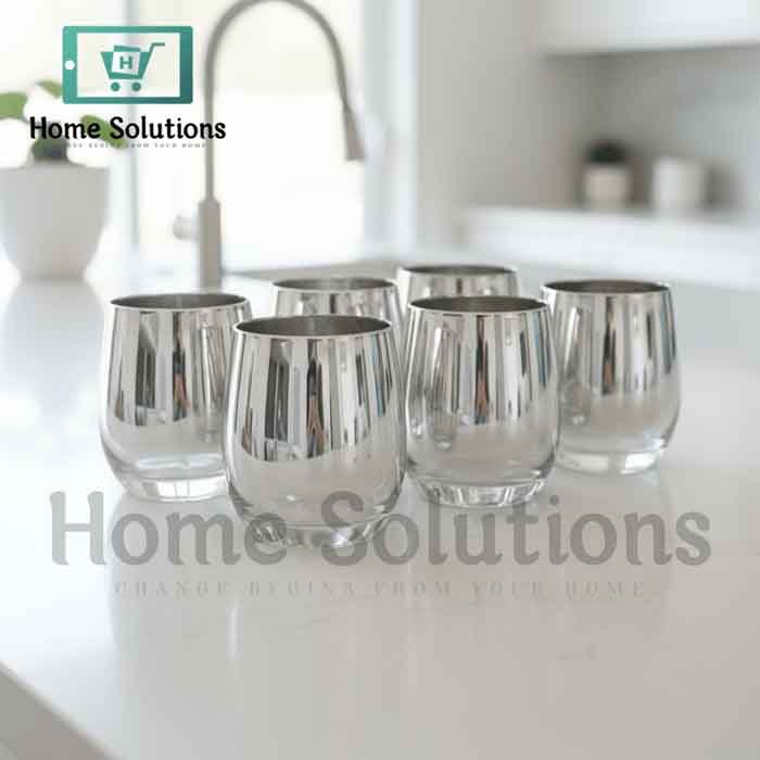 Danny Home 6-Pc Silver Rim Glass Set 345ml – Elegant Drinkware