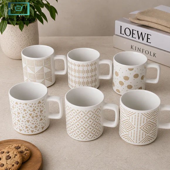 Each set includes a mix of stylish design patterns, offering variety and a trendy look for your kitchen or café setup. Whether you’re starting your morning with coffee or relaxing with tea, this mug brings comfort and elegance to every sip.