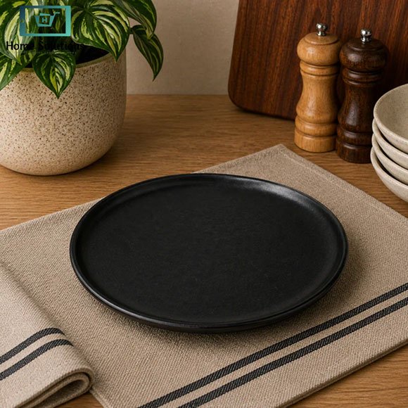 Danny Home ceramic side plate 8 inch black design. Stylish, durable and perfect for snacks, desserts and everyday serving.