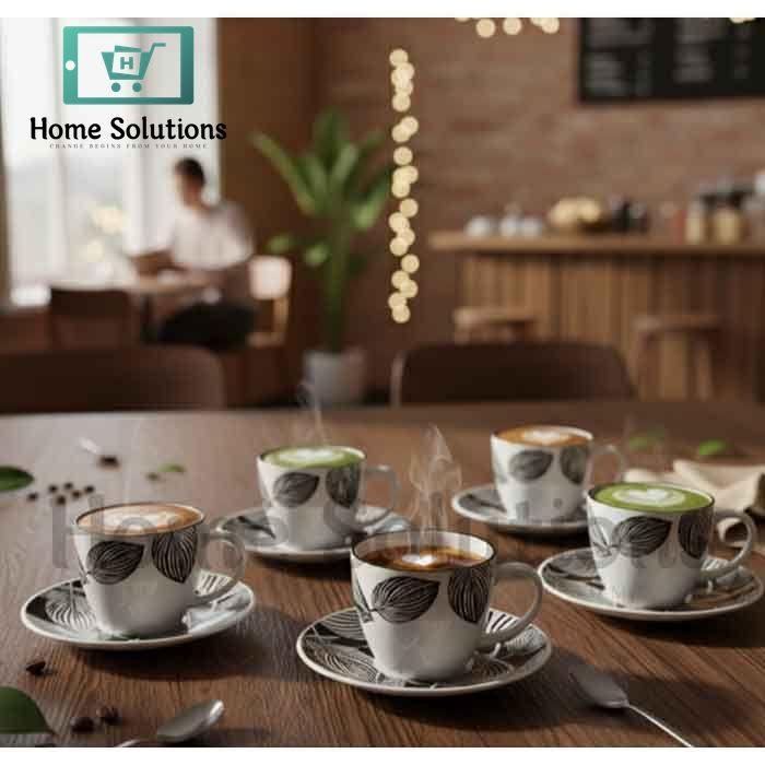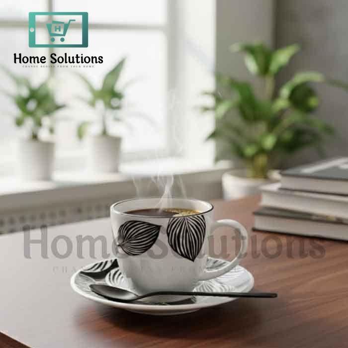 Infuse your daily tea or coffee moments with sophisticated style using the Danny Home Cup & Saucer Set – Black Leaves. This exquisite collection of six 200ml cups and matching saucers showcases a chic black leaf motif, bringing a modern yet elegant touch to any Pakistani household’s table setting.