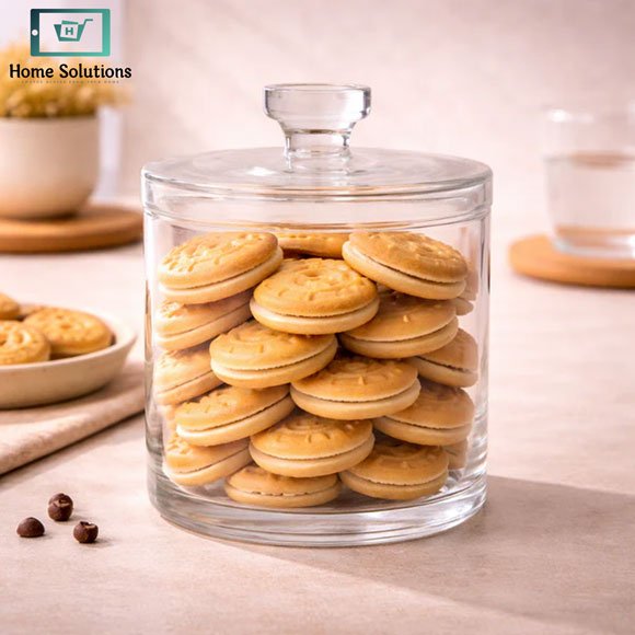 Decorative glass cookie jar 13.8cm by Danny Home. Airtight, durable and perfect for storing cookies, snacks & nuts in style.