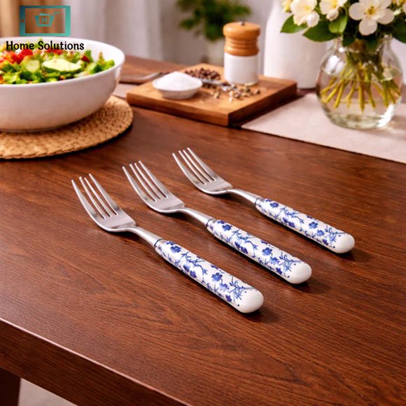 Enhance your dining presentation with the elegant Fruit Fork Set 3pcs, designed to add charm and sophistication to your cutlery collection. Featuring a beautiful intricate floral design with a premium porcelain handle, this fork set brings a touch of luxury to everyday dining.