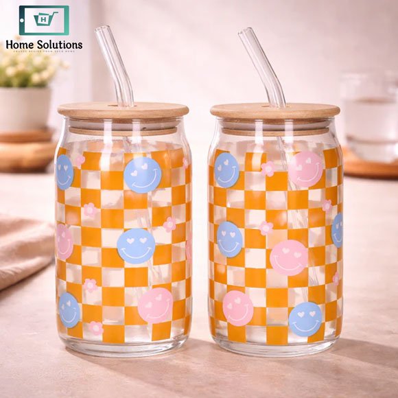 Spice up your cupboard with these stylish, trendy & food safe Cola Drinking Glass Cups. Hearts and cute writing printed designed.