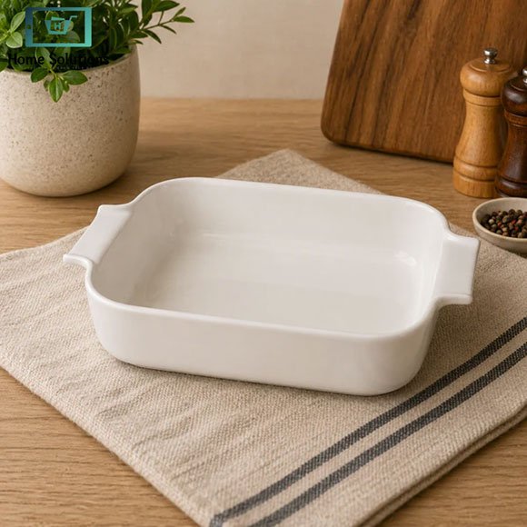 Danny Home rectangular roaster dish 23.3cm porcelain baking dish with handles oven safe white casserole dish
