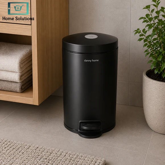 Danny Home 12L trash can in black with soft-close lid. Durable steel design, compact size and perfect for kitchen, bathroom or office use.
