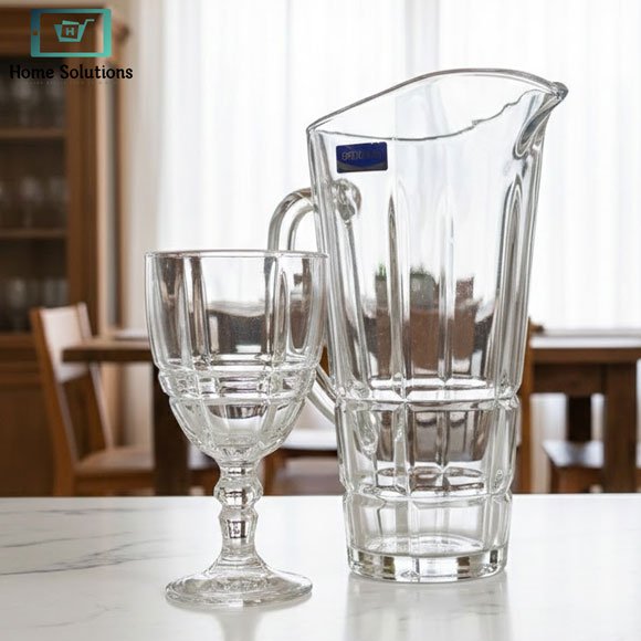 Serve your beverages in style with the elegant Delisoga Imported Glass water Set, designed to add sophistication to any dining table. Featuring a unique snow-pattern glass design, this premium water set instantly enhances your serving experience while functioning as a decorative centerpiece.