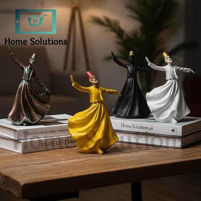 Embrace the serene beauty of the Mevlevi tradition with this enchanting Rumi Whirling Dervish Art Figurines Set. Discover your perfect arrangement at HomeSolutionsPK.com and bring a piece of spiritual artistry into your home.”