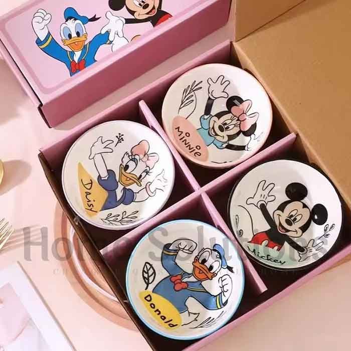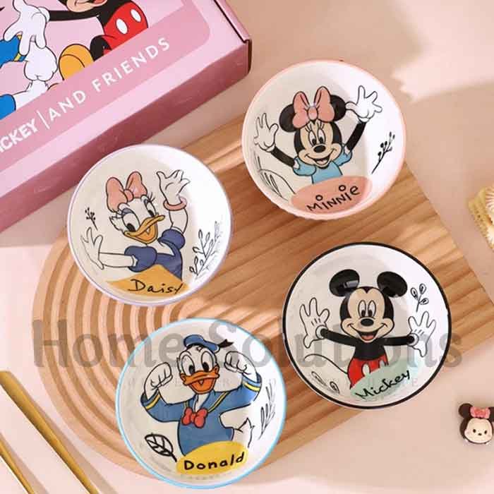 DISNEY Mickey & Friends Authentic Porcelain Bowl Set with Gift Box – 4 Pieces – 300ml