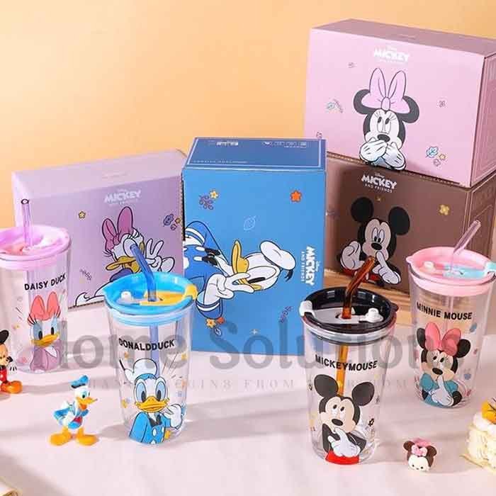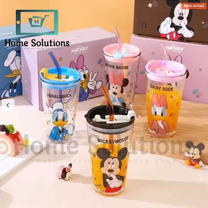 DISNEY Mickey & Friends Authentic Sipper Glass with Lid & Straw – 450ml