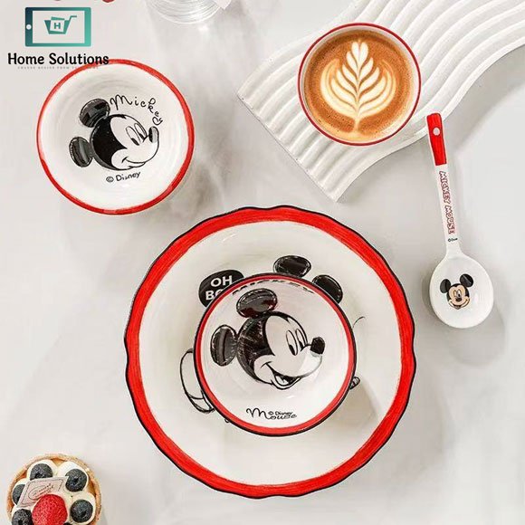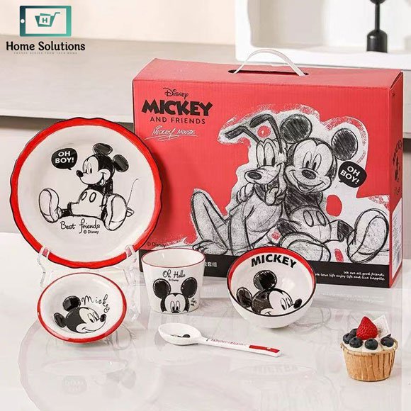 Make mealtime fun and exciting with this Disney Mickey & Friends 5-Piece Ceramic Meal Set, specially designed for kids and Disney lovers. This complete dinnerware set includes a large dinner plate, a small snack plate, a deep bowl, a drinking cup, and a matching spoon—perfectly curated for a joyful and functional dining experience.
