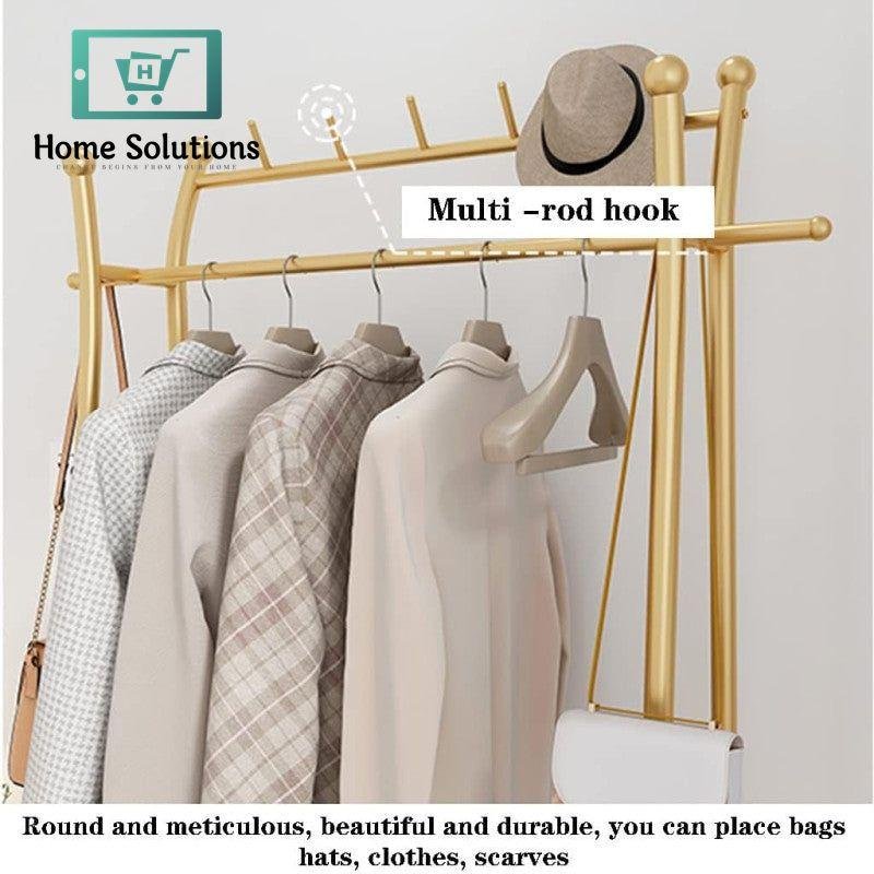The space on both sides is reserved, round and thin, with the clothes rod, multiple hooks, beautiful and durable, you can place bags, hats, clothes, scarves.