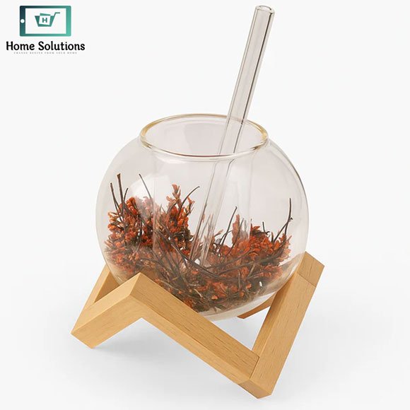 Material: Double-walled borosilicate glass + wooden stand