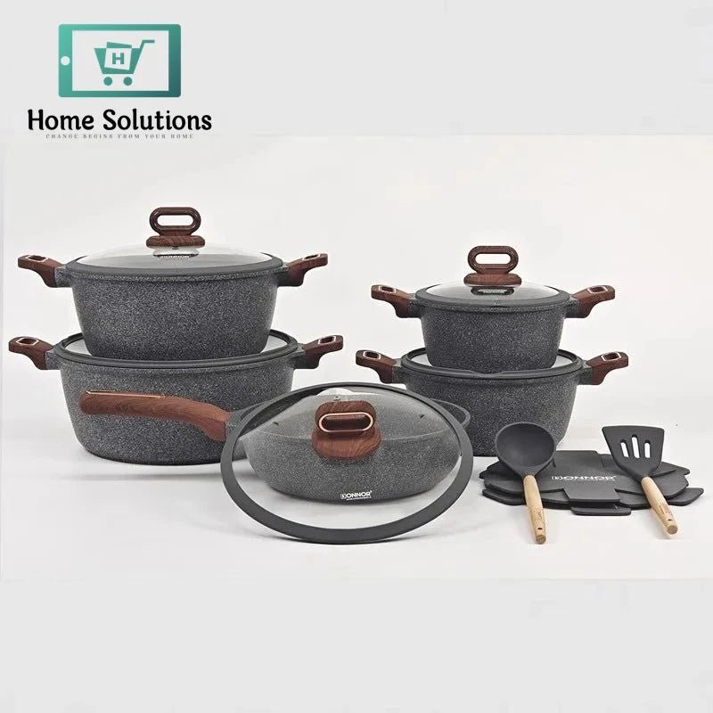 Perfect for gas stoves, this stylish cookware set combines strength, performance, and modern design for everyday home cooking.