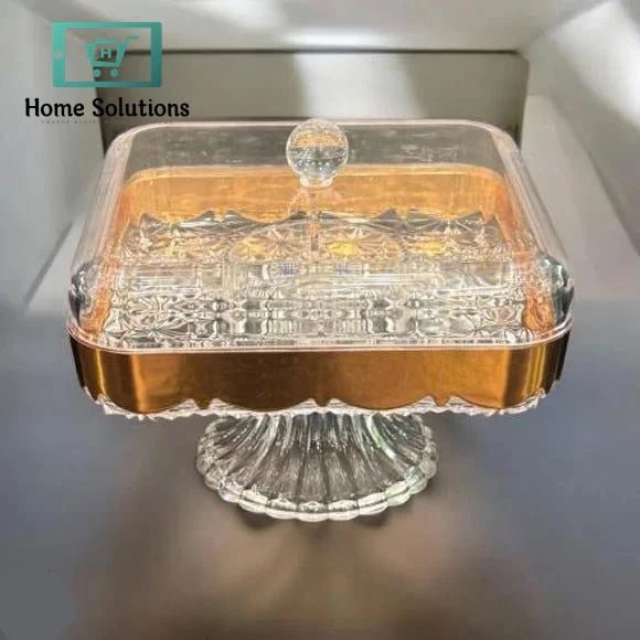 Elegant Crystal Dry Fruit Server with Gold Accents – Premium Snack & Treat Dish (Small)