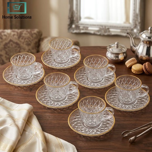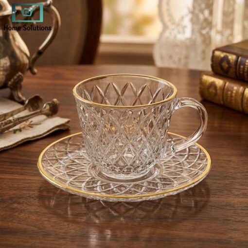 Strong, reusable, and easy to clean, these cups and saucers are built for long-lasting use without losing their shine or charm. This set also makes a perfect gift for housewarmings, weddings, or special occasions, offering both beauty and practicality in one package.