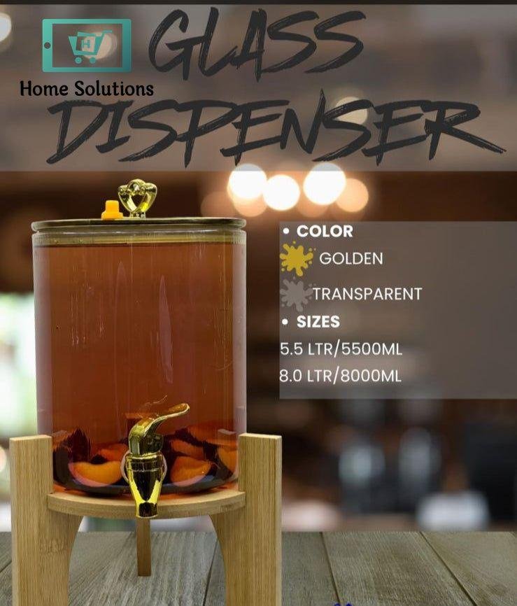 Serve your favorite beverages with ease using this 5.5 & 8.0 litre glass dispenser. Designed with a smooth-flow faucet for drip-free pouring and a sturdy bamboo stand for raised, elegant serving. Ideal for juices, infused water, iced tea, or mocktails—perfect for parties, buffets, or daily use. The wide opening allows for easy filling and cleaning, while the clear glass body adds a stylish touch to any setting. Durable, practical, and made for effortless entertaining.