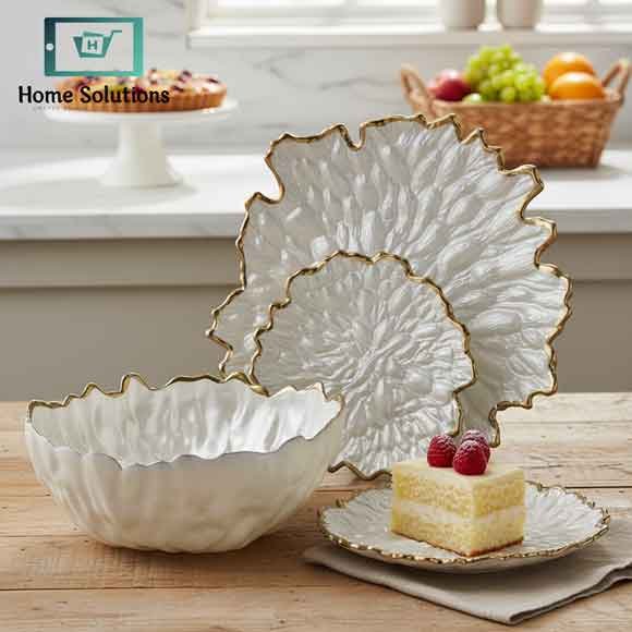 Add a touch of timeless elegance to your dining with this Luxury Gold Leaf Textured Fruit and Cake Serving Set (14 Pieces). Designed to impress, this premium set features a stunning gold leaf texture with a glossy finish — perfect for showcasing fruits bowl, cakes, or desserts in style.
